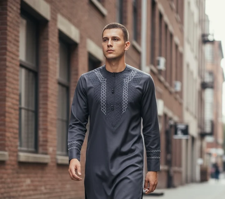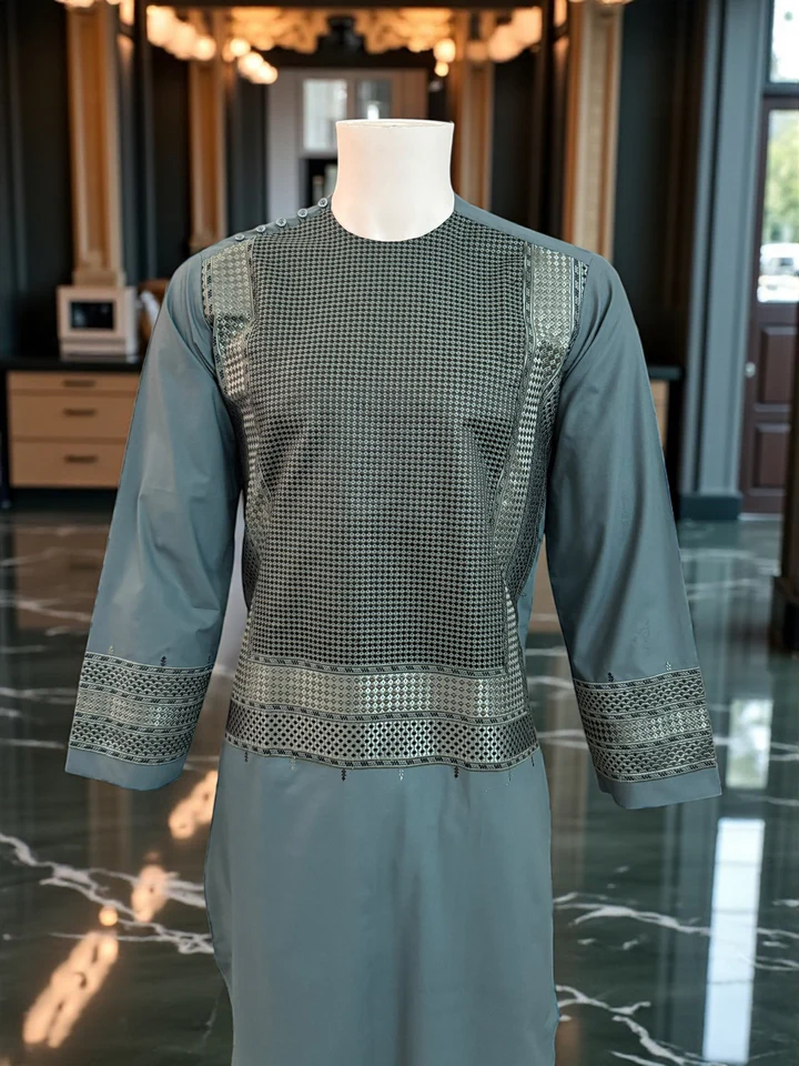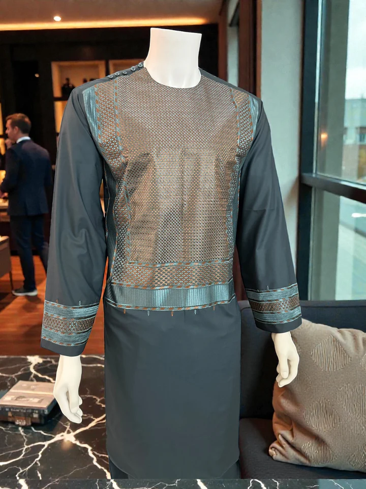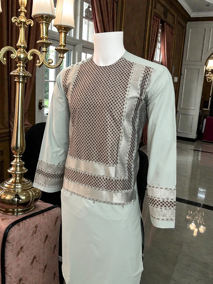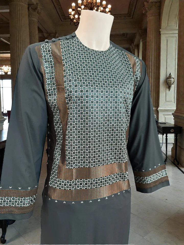 Men’s Afghan Parahan Tunban with Geometric Embroidery in Dark Grey – Premium Traditional Outfit – Medium #2883