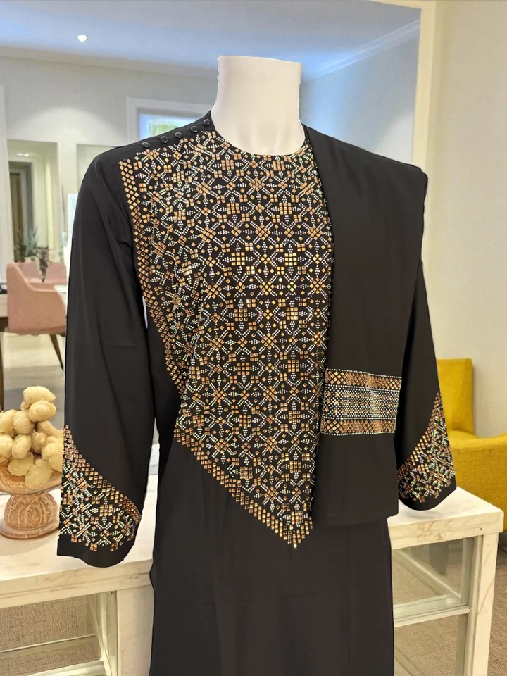 Men’s Black Handmade Mirror Work 3-Piece Traditional Afghan Outfit – Small #2831